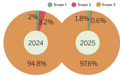 The CO₂e footprint included in this annual report includes RTL Nederland. This also applies to the figures for 2023 and 2024. This is standard practice under the prescribed reporting rules (GHG Protocol).