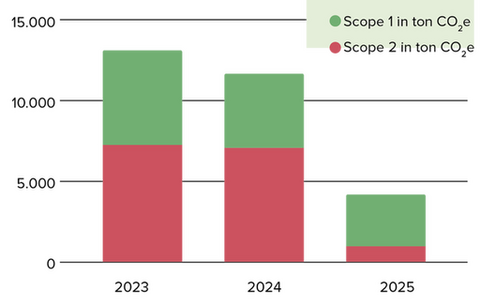 De overstap van verouderde kantoorgebouwen naar Mediavaert, energiebesparende maatregelen in bestaande gebouwen en de aankoop van duurzaam opgewekte elektriciteit doen de uitstoot in scope 1 en 2 zeer sterk dalen.