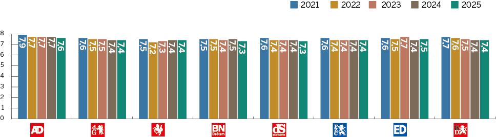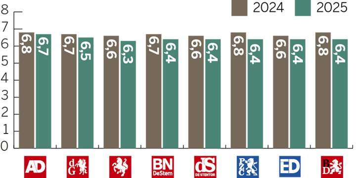 Dit cijfer is afkomstig uit recent onderzoek naar merkvertrouwen in opdracht van DPG Media. Daarbij geeft een algemeen publiek, dus niet alleen abonnees of bezoekers, vertrouwen in verschillende nieuwsmedia aan op een schaal van 0 (helemaal niet betrouwbaar) tot 10 (uiterst betrouwbaar). Daarnaast worden abonnees uitgesplitst, die hun titel doorgaans meer dan gemiddeld vertrouwen. Deze onderzoeksmethode en de uitkomsten komen overeen met die van het jaarlijkse Digital News Report van het Reuters Institutein Oxford. De Nederlandse en Vlaamse gemiddelde vertrouwenscijfers liggen in die monitor hoger dan die van nieuwsmedia in de omringende Europese landen.